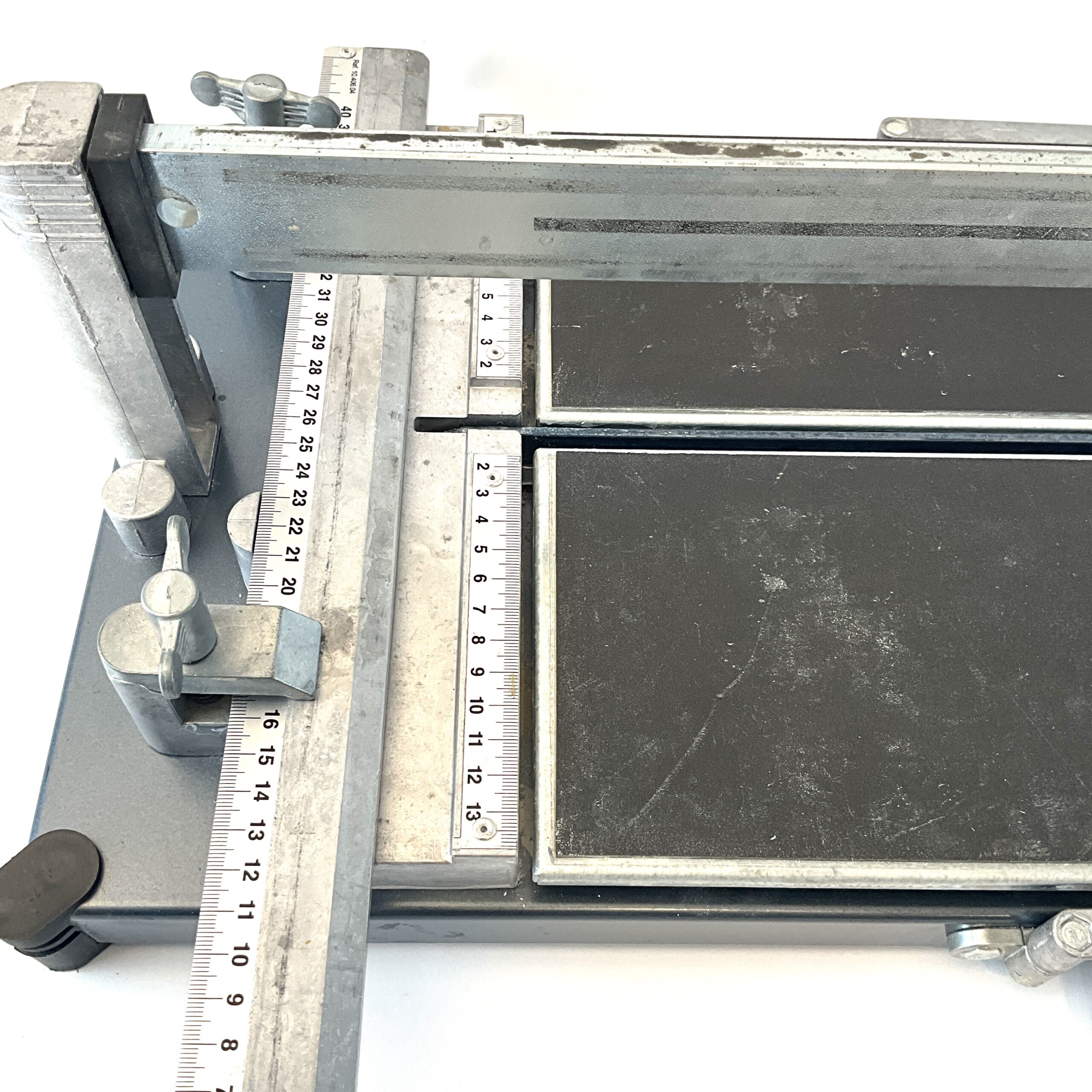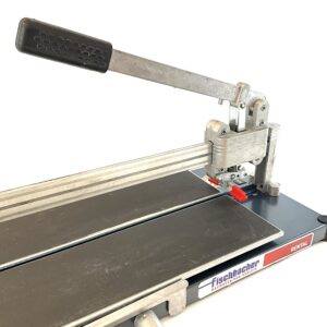 Die PVC-Füße sind rutschsicher und verhindern Kratzer auf bereits verlegten Fliesen. Ein professionelles Hartmetall-Schneidrad mit einem Durchmesser von 22 mm und Titan-Beschichtung garantiert saubere Schnitte. Die Maschine verfügt außerdem über eine Seitenauflageverbreiterung, einen Tragegriff für einfachen Transport und eine Transportsicherung für den Führungskopf.
