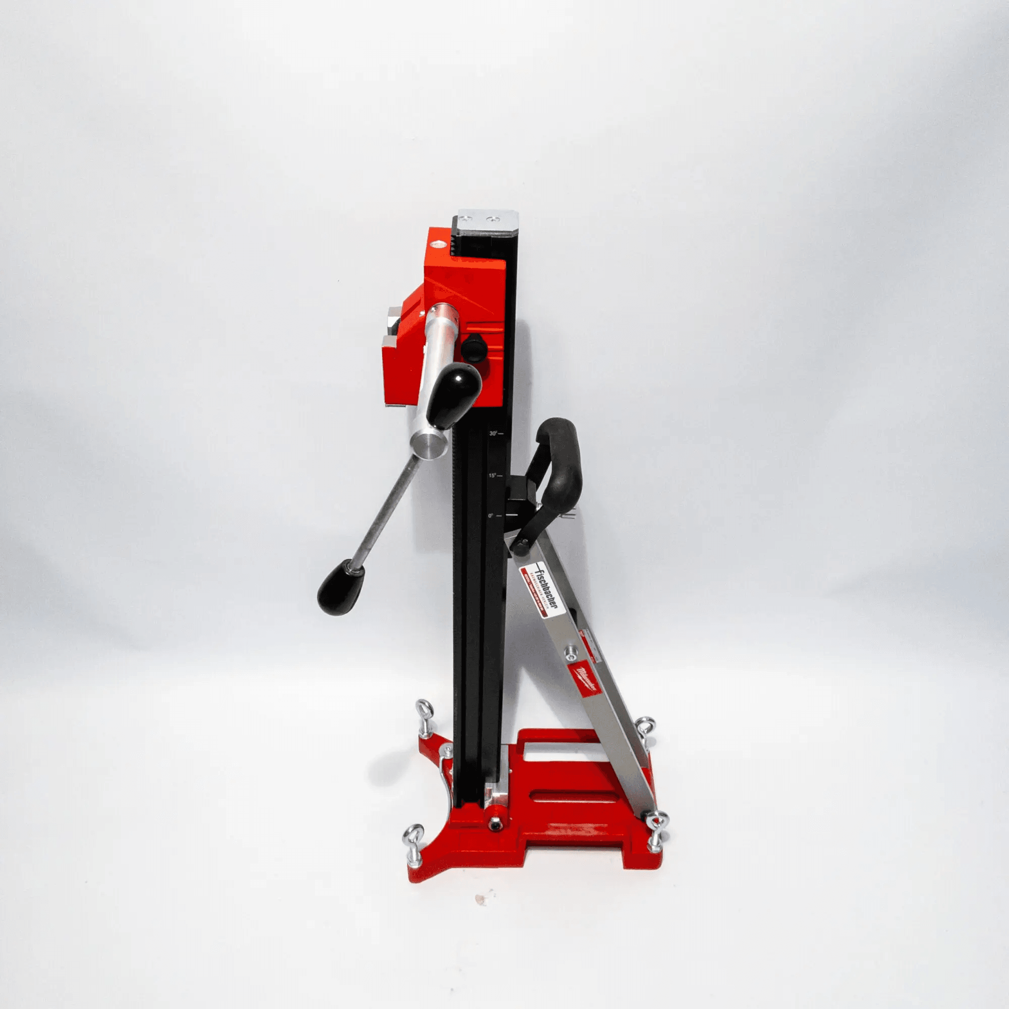 Die kompakte Aluminium-Bodenplatte macht den Ständer besonders einsatzfähig, auch in beengten Räumen. Für mehr Flexibilität lässt sich das Handrad sowohl rechts als auch links montieren. Ein integrierter Transportgriff erleichtert den mobilen Einsatz auf wechselnden Baustellen.
