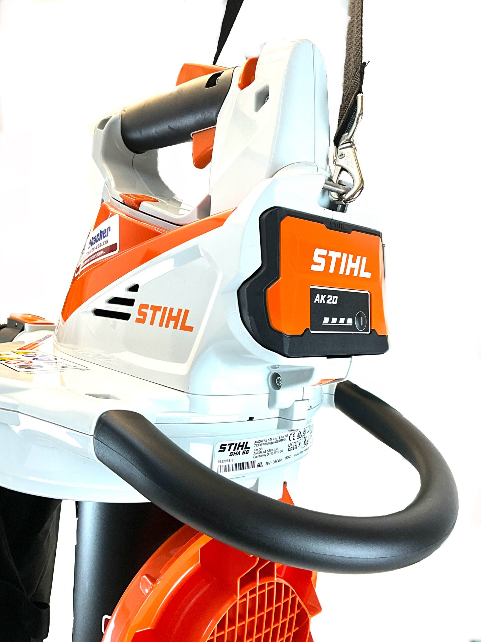 Mit dem STIHL SHA 56 kannst du Laub und Heckenschnitt effizient aufsaugen und häckseln oder Laub, Papier und Blasgut wegblasen. Dank werkzeuglosem Umbau von Saug- auf Blasbetrieb und variabler Drehzahlregulierung ist er vielseitig einsetzbar. Der leise, elektrisch betriebene Laubsauger eignet sich ideal für lärmsensible Bereiche. Der 40-Liter-Fangsack ist leicht zu entleeren, und das verstellbare Blasrohr sorgt für komfortable Handhabung. Der Häckselstern aus Metall gewährleistet eine effektive Zerkleinerung des Schnittguts.